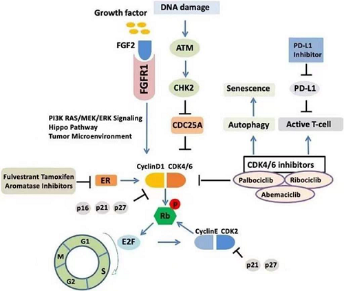 细胞周期是一个高度保守、复杂有序、受到严格调控的过程,分4个阶段。细胞周期各个阶段的顺利进行是细胞增殖的基础,周期蛋白依赖性激酶(cyclin-dependent kinases,CDK)与细胞周期蛋白(cyclin)的结合在其中发挥着重要的调控作用。CDK属于丝氨酸/苏氨酸蛋白激酶家族,家族成员有CDK1~CDK8。其中,CDK4和CDK6是发挥核心调控作用的关键因子。造血干细胞和淋巴细胞的细胞周期进程同样依赖于CDK4/6的调控,当CDK4/6受到相关药物抑制时,这些细胞就会被阻滞在G1期。如果造血干细胞和淋巴细胞的细胞周期在机体接受细胞毒药物化疗时能被短暂阻滞,可以降低它们因化疗所受的损伤,从而保护患者骨髓及免疫系统[2]。曲拉西利正是基于此作用机制设计的CDK4/6抑制剂。