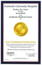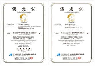 顺天堂医院被日本厚生劳动省评选为日本特定功能医院,并获得JCI(国际联合委员会)的国际医院认证,成为日本兼备医学教育和人类健康研究双重任务的大学附属医院中取得该资格的首家医院。