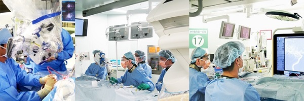 显微镜下的开颅手术在兼有手术室和血管造影室功能的“混合手术室”中进行脑血管内治疗(图源医院官网)