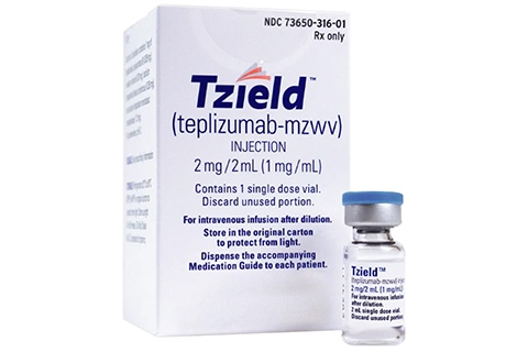 替利珠单抗(Teplizumab)用于延缓特定高危人群临床期(3期)1型糖尿病的发病。
