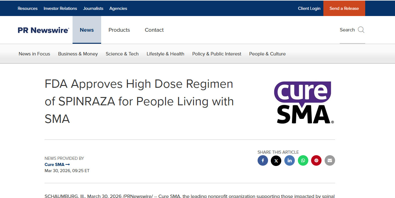 FDA批准SPINRAZA高剂量方案用于治疗脊髓性肌萎缩症患者