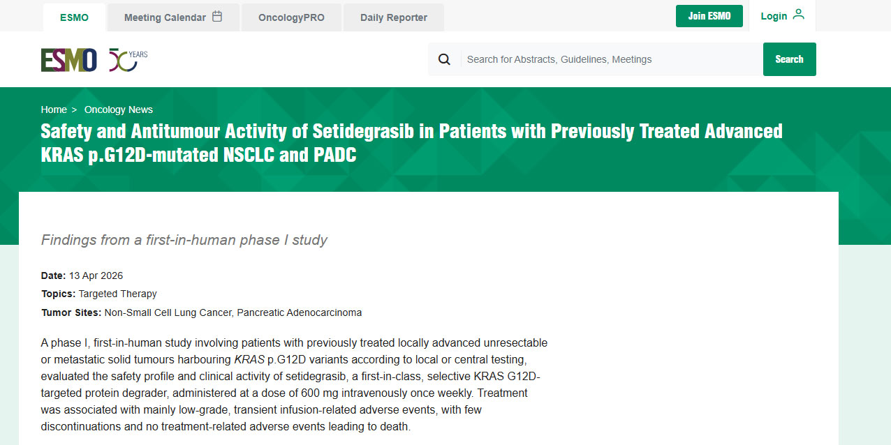 Setidegrasib在既往经治的晚期KRASp.G12D突变非小细胞肺癌和胰腺导管腺癌患者中的安全性与抗肿瘤活性