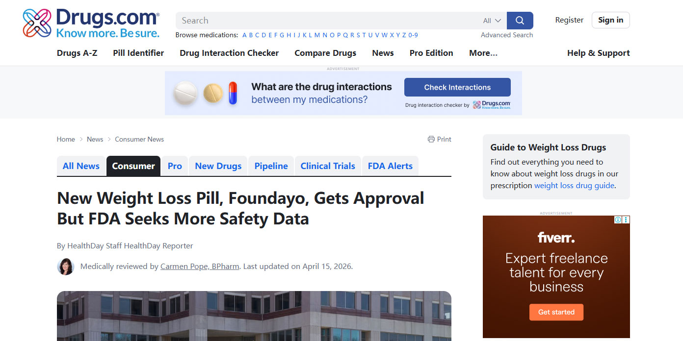 新型减肥药Foundayo获批,但FDA要求更多安全数据