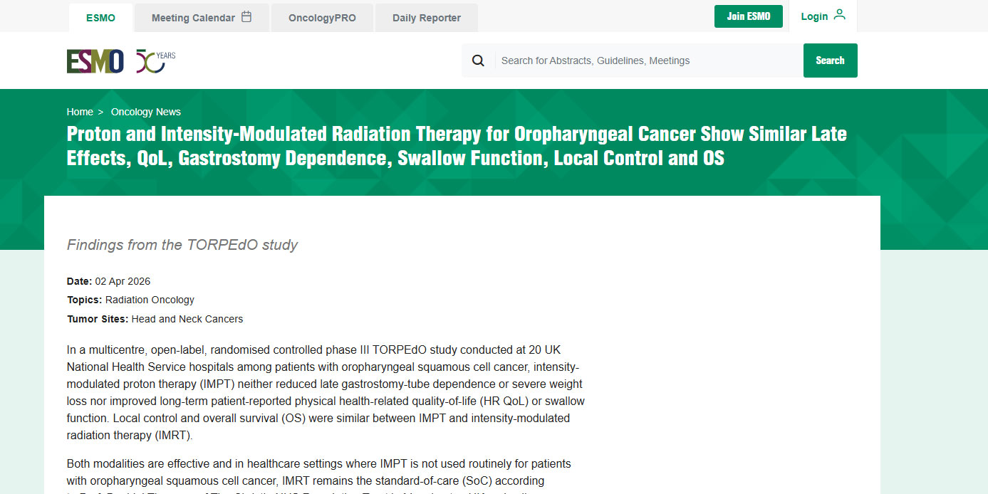 质子和调强放疗治疗口咽癌:晚期效应、生活质量、胃造瘘依赖、吞咽功能、局部控制和总生存期相似