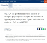 美国FDA加速批准Loargys(培齐精氨酸酶-nbln)用于治疗2岁及以上精氨酸酶1缺乏症(ARG1‑D)患者的高精氨酸血症