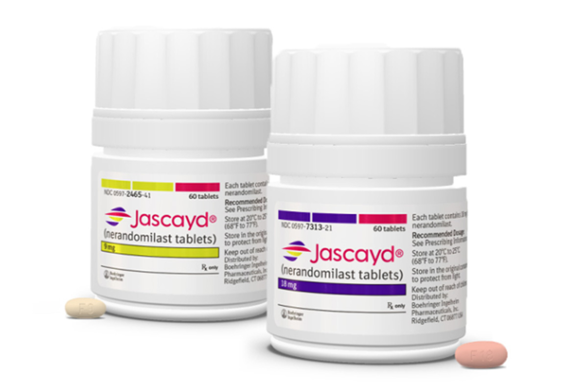 Jascayd(nerandomilast)由德国制药公司勃林格殷格翰国际有限公司研发,是一款新型磷酸二酯酶4B(PDE4B)抑制剂。该药专为成人特发性肺纤维化(IPF)等进展性纤维化性肺疾病设计,旨在通过调节免疫与抗纤维化机制改善肺功能。2025年10月7日,美国FDA正式批准其上市,这标志着IPF治疗领域迎来首个同类创新药,为长期受疾病困扰的患者提供了新的希望。