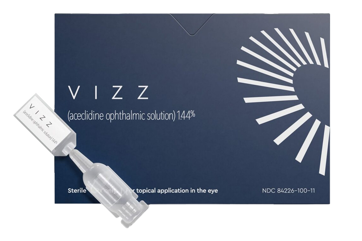 醋克利定滴眼液(Aceclidine,商品名VIZZ)由美国LENZ Therapeutics开发,通过选择性缩瞳产生“针孔效应”,提升景深以改善成人老花眼视力。其采用无防腐剂单剂量包装,每支0.4mL,为当前老花眼提供一种非手术、日常可用的治疗方案。