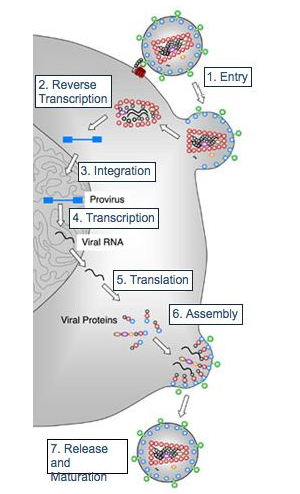 Fusion inhibitors和entry inhibitors主要抑制的是病毒颗粒和CD4细胞融合和进入的步骤,也就是上述病毒复制的第1步。
